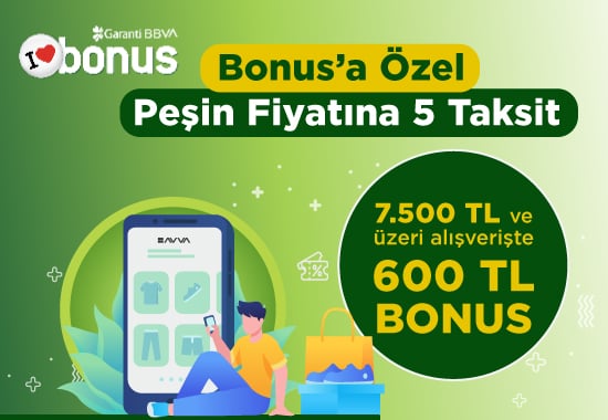 Bonusa Özel Peşin Fiyatına 5 Taksit + 7.500 TL ve Üzeri Alışverişte 600 TL BONUS