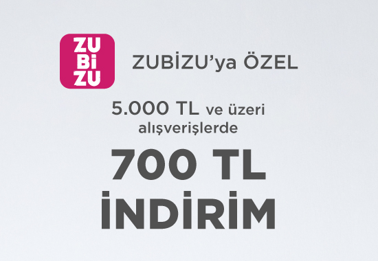 avva.com.tr’den yapılacak 5.000 TL ve üzeri online alışverişlerde ZUBİZU’ya özel ekstra 550 TL indirim uygulanacaktır. Kampanya tüm ürünlerde geçerlidir. Kampanyadan 1 kişi maksimum 3 kez faydalanabilir. AVVA ve ZUBİZU kampanya kapsam, koşul ve süresini değiştirme hakkını saklı tutar.