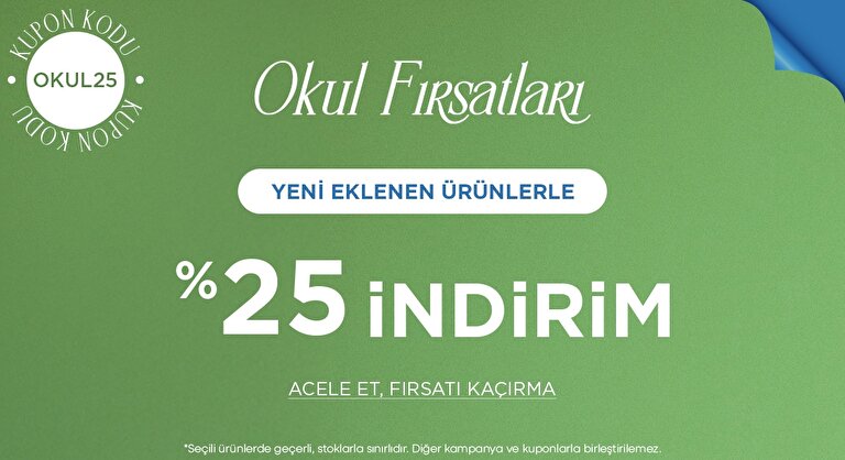*Kampanya 13 Ocak 2025 12.00- 17 Şubat 2025 23.59 saatleri arasında geçerli, stoklarla sınırlıdır. Diğer kampanya ve kuponlarla birleştirilemez.